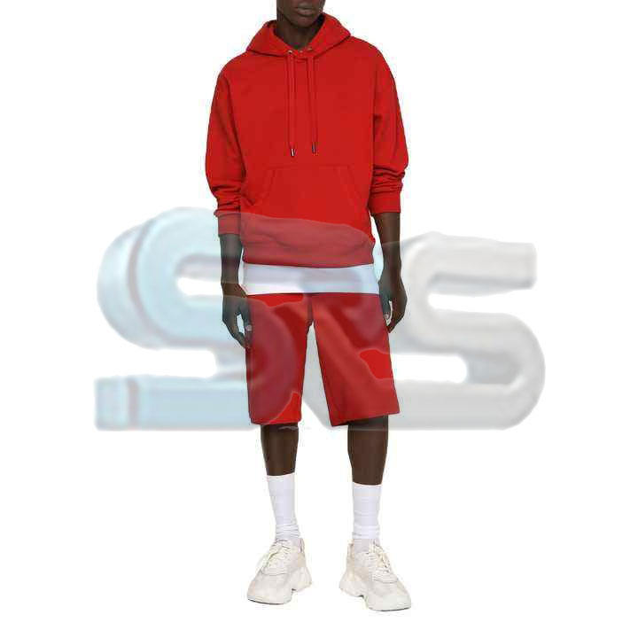 เซ็ตกางเกงขาสั้นมีฮู้ดสำหรับผู้ชายชุดเสื้อคอกลมทรงหลวมทำจากผ้าฝ้ายออร์แกนิกใส่ได้ทั้งชายและหญิงชุดแฟชั่นสำหรับฤดูร้อนพร้อมโลโก้ออกแบบได้ตามต้องการ