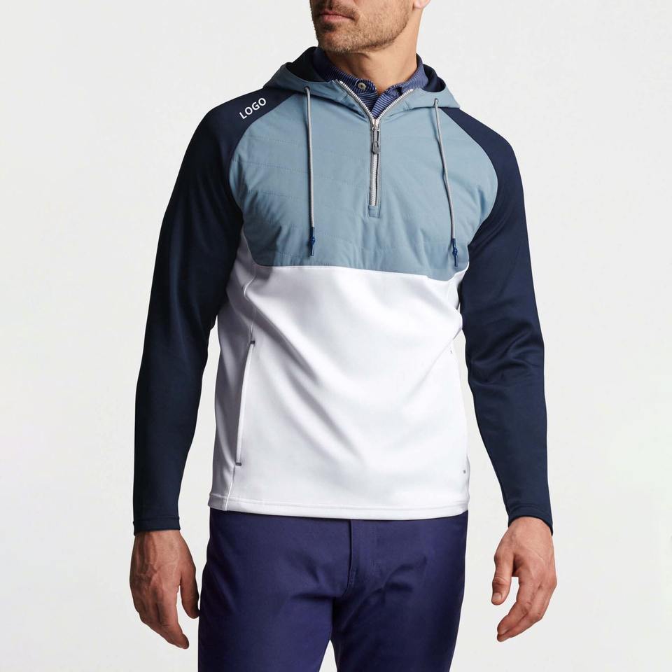เสื้อฮู้ดแขนยาวสำหรับผู้ชายเสื้อฮู้ดแบบกำหนดเองมีซิป1/4โพลีเอสเตอร์สแปนเด็กซ์แขนยาวสำหรับใส่ตีกอล์ฟ