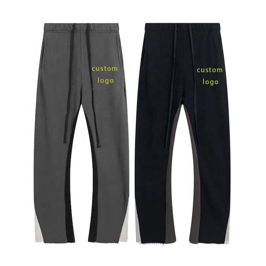 กางเกงวอร์มทรงขาบานเอวกลางผ้าฝรั่งเศสเทอร์รี่ 100% ผ้าฝ้ายคุณภาพสูงสำหรับผู้ชาย ลายสาดสีแบบซ้อน ดีไซน์ลำลองแบบสมาร์ท