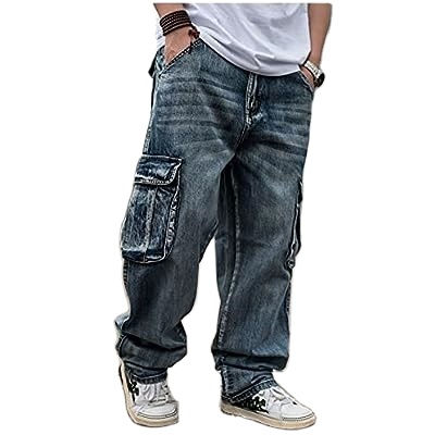 กางเกงยีนส์ทรงหลวมของผู้ชายแบบสั่งทำกระเป๋าข้าง100% ผ้าฝ้ายระบายอากาศได้ดีโลโก้ซักเบากลางๆ