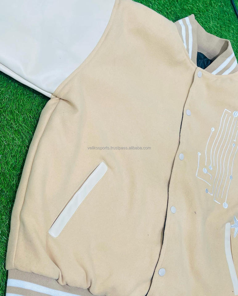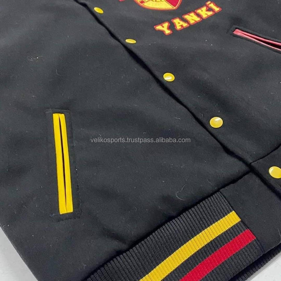 แจ็กเก็ตเบสบอลทีมโรงเรียนของผู้ชายเสื้อแจ็คเก็ตหนังแขนควิลท์ขนสัตว์ระบายอากาศสำหรับฤดูใบไม้ร่วงฤดูหนาวโลโก้ตัวอักษร