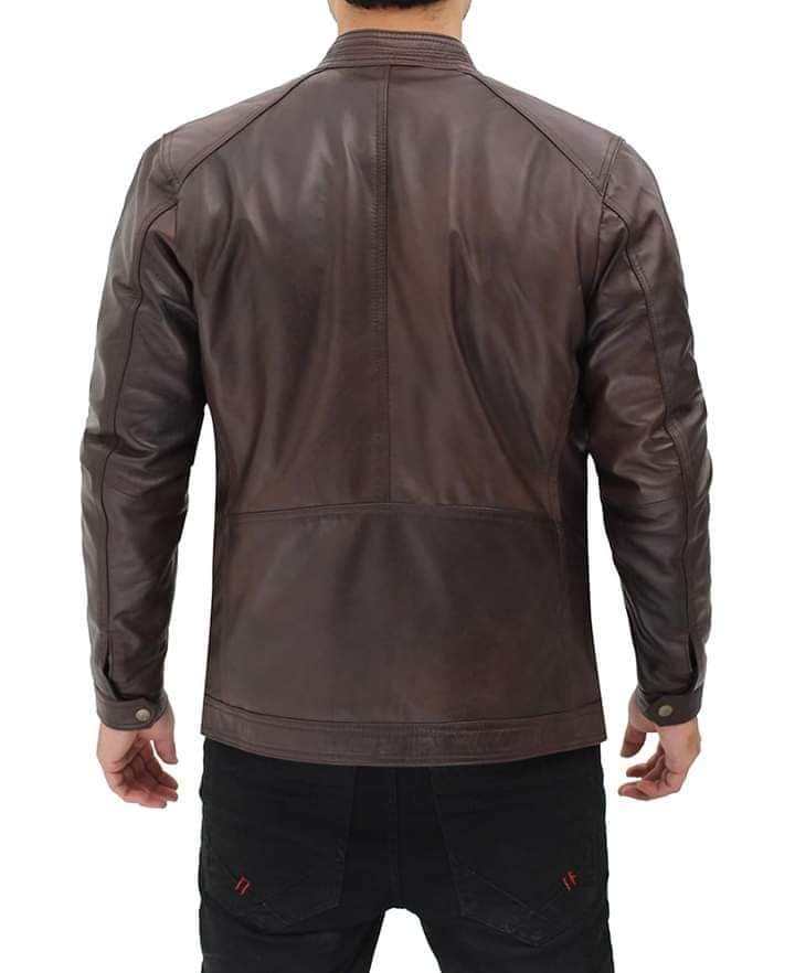 High Quality Custom Men's Biker Fashion Jacket in Genuine Leather Brown Motorcycle Classic Style Breathable Jacket Stand Collar