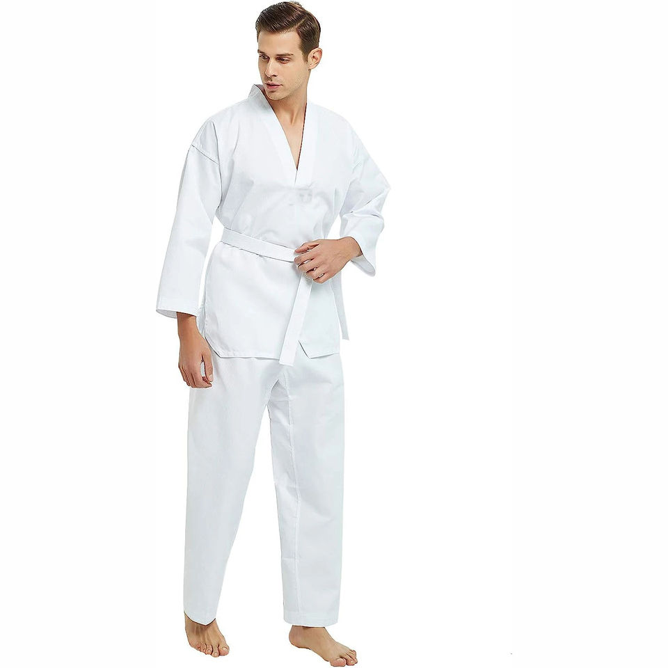 เครื่องแบบคาราเต้ผ้าฝ้ายสำหรับผู้ชายแบบสั่งตัดขนาดพอดีตัวระบายอากาศได้ดีอุปกรณ์ศิลปะการต่อสู้แบบลำลองสำหรับผู้ใหญ่ทุกเพศ