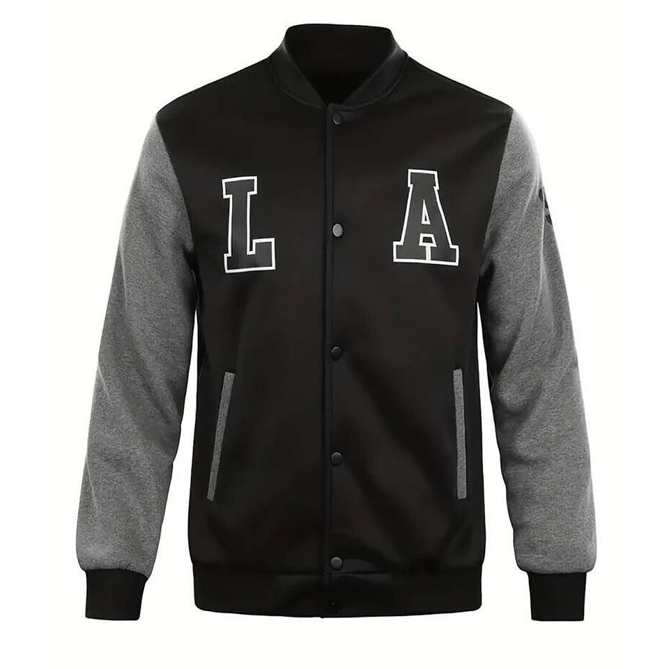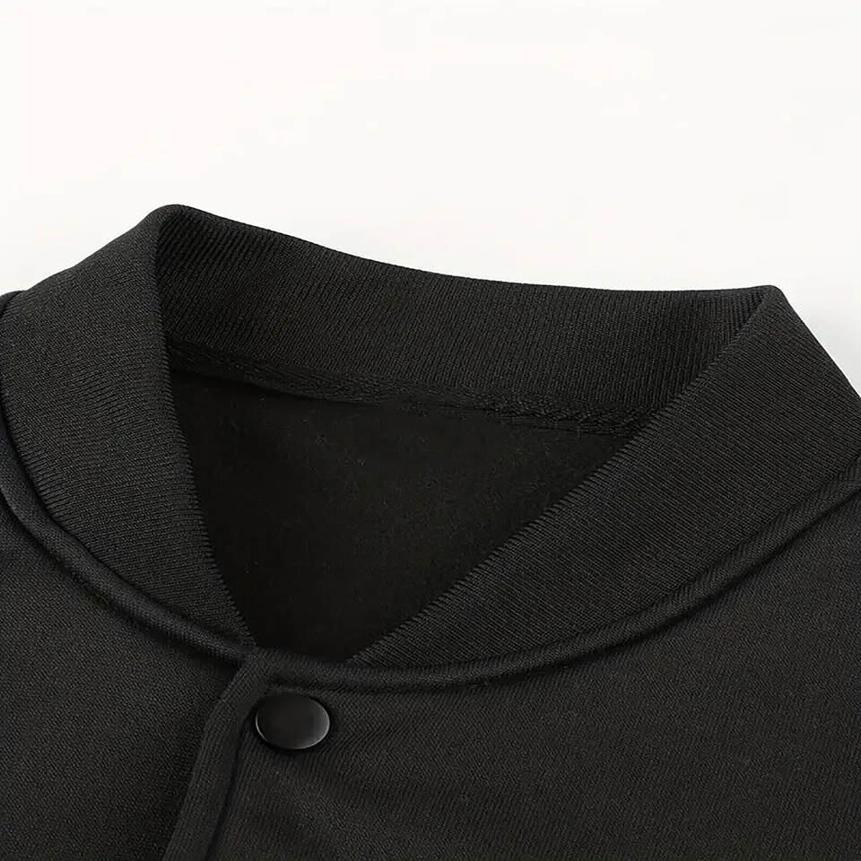 แจ็คเก็ตวาร์ซิตี้ผ้าฟลีซคุณภาพสูงสำหรับผู้ชาย ปกตั้ง ปักโลโก้ด้านหน้า งานผ้าแคนวาส ยอดนิยมสำหรับเสื้อเบสบอลแบบวิทยาลัย