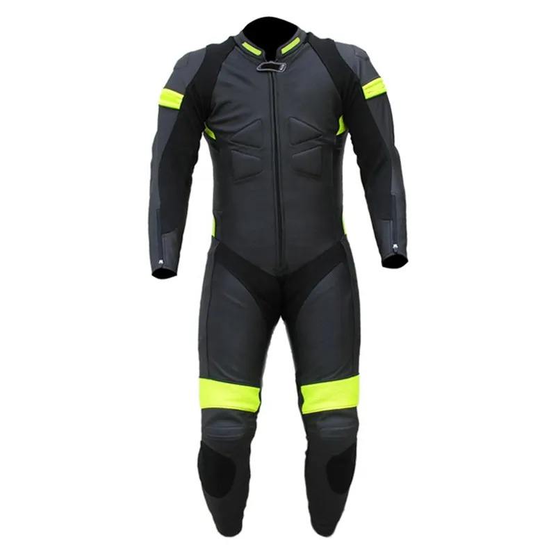 ชุดแข่งรถมอเตอร์ไซค์หนังคุณภาพสูงสำหรับผู้ชาย สีพื้น พร้อมวัสดุระบายอากาศและโลโก้สำหรับชุดมอเตอร์ไซค์