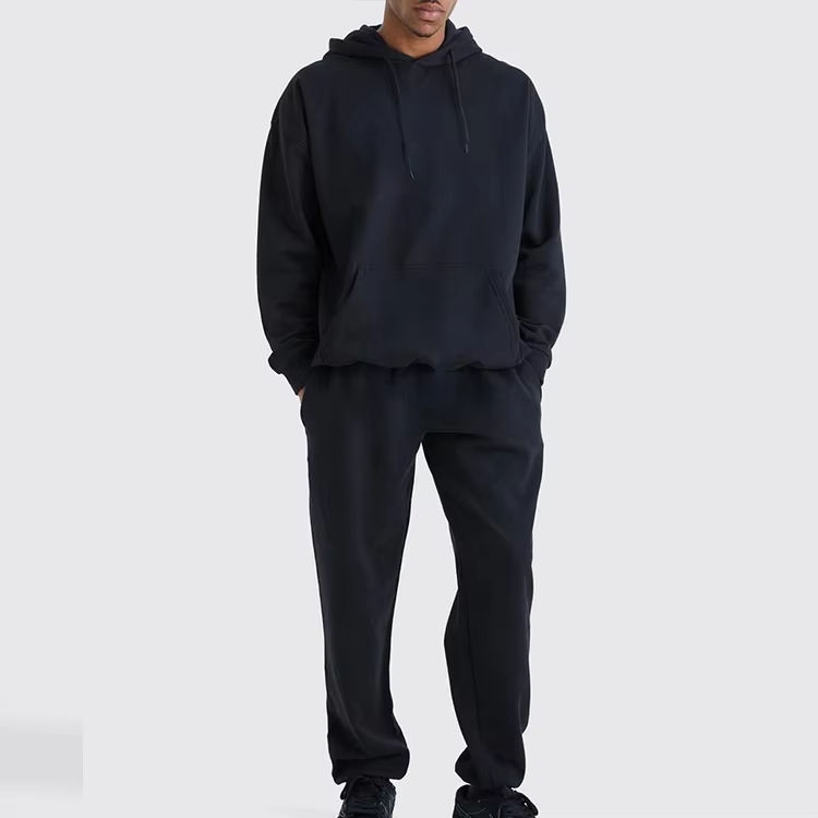 ชุดสูทผ้าฝ้ายแบบมีฮู้ดและกางเกงโอเวอร์ไซส์ของผู้ชายกางเกงเสื้อสเวตเตอร์แขนยาวเปิดไหล่ตกพร้อมฮู้ดสำหรับฤดูหนาว