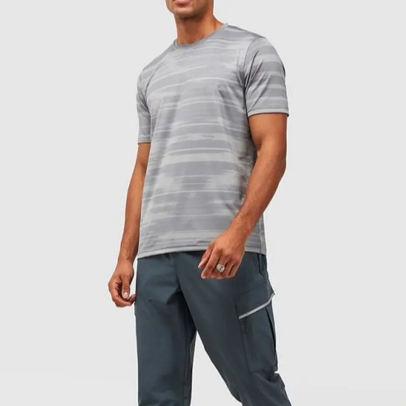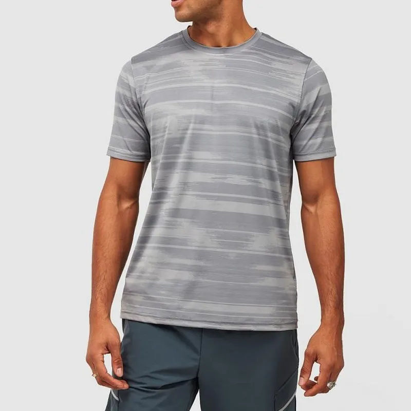 เสื้อยืดกีฬาแขนสั้นของผู้ชายใส่สบาย260กรัมวัสดุโพลีเอสเตอร์พิมพ์ซับลิเมชัน