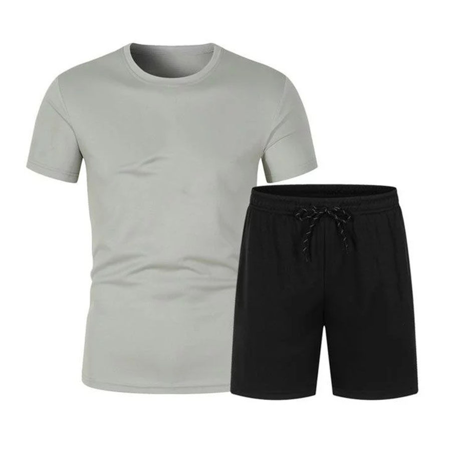 ชุดเซ็ตเสื้อยืดและกางเกงขาสั้นลำลองผู้ชายคุณภาพสูงสำหรับฤดูใบไม้ร่วง ออกแบบโลโก้แบรนด์ของคุณเอง ผ้าฝ้ายเนื้อนุ่ม น้ำหนักเบา สวมใส่สบาย ดีไซน์ 2 in 1