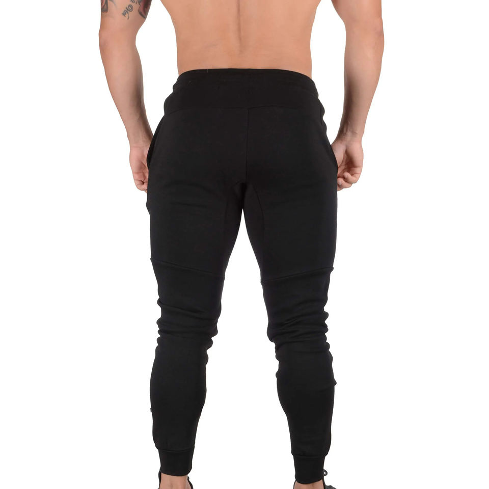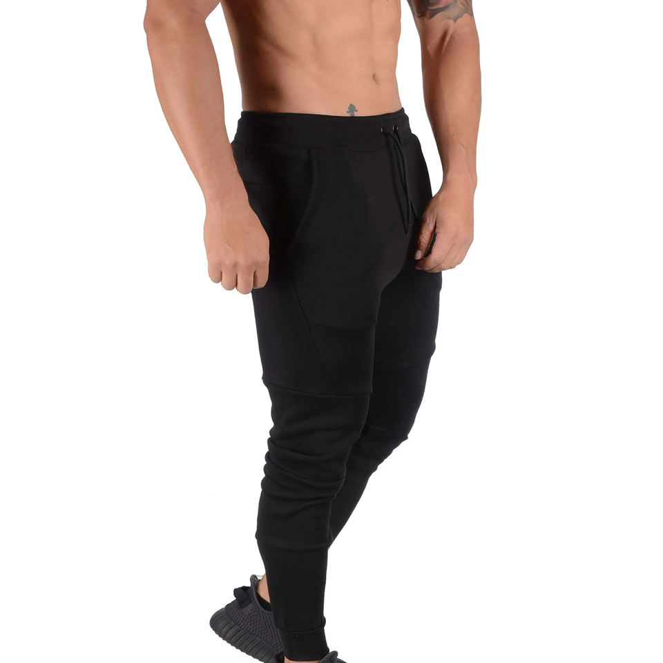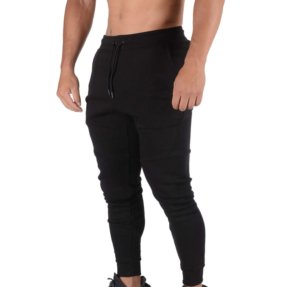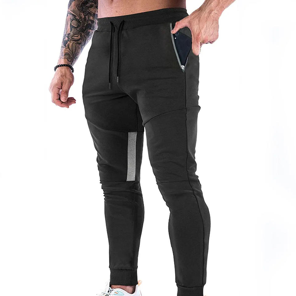 กางเกงออกกำลังกายสีดำลำลองมีกระเป๋าสำหรับผู้ชายกางเกงวอร์มแบบสั่งทำใหม่จากโรงงาน