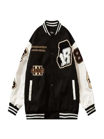 แจ็คเก็ตบอมเบอร์ทรงวาร์ซิตี้คุณภาพสูงสำหรับผู้ชาย แจ็คเก็ตเบสบอลแบบ Letterman บุผ้าฝ้ายปักลาย PU สำหรับฤดูหนาว พร้อมซิป