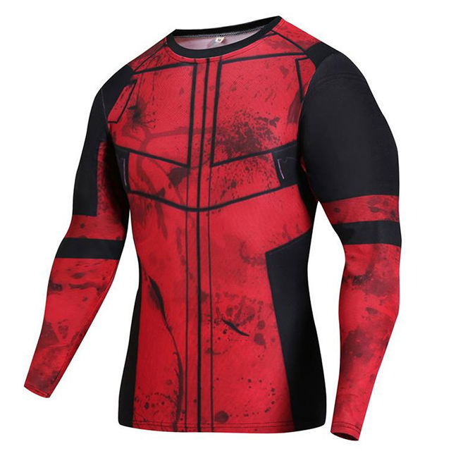 เสื้อแรชการ์ดคอกลมแขนยาวแบบซับลิเมชั่นคุณภาพสูงสำหรับผู้ชาย ผลิตจากวัสดุโพลีเอสเตอร์ผสมสแปนเด็กซ์ที่เป็นมิตรต่อสิ่งแวดล้อม บริการ OEM ขั้นต่ำในการสั่งซื้อน้อย