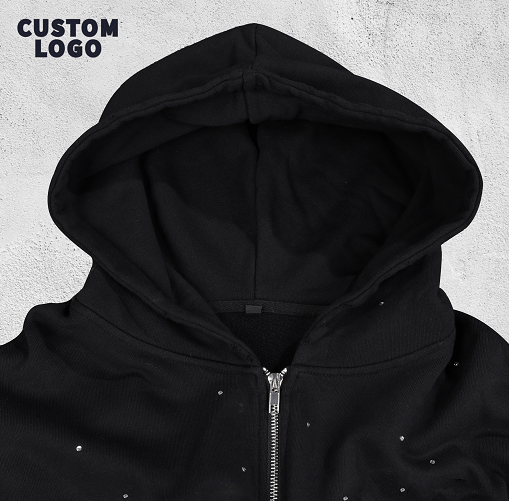 เสื้อสเวตเตอร์ของผู้ชายแบบสั่งทำปักซิปรูดผ้าฝ้ายแฟชั่นประดับเพชรสีสันสดใส