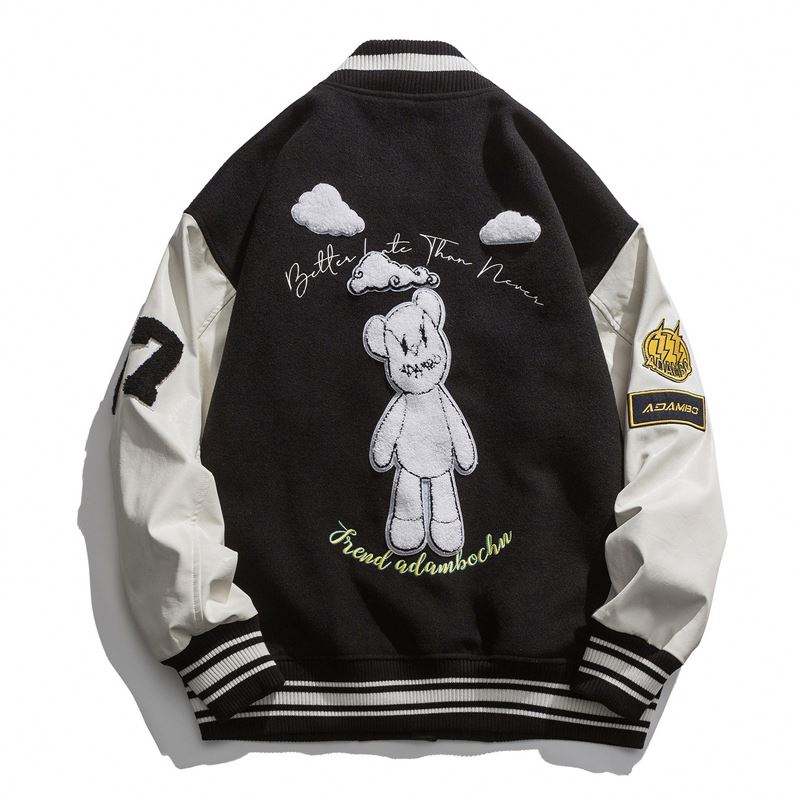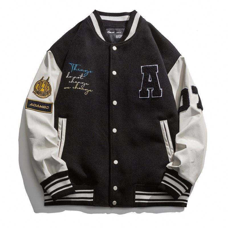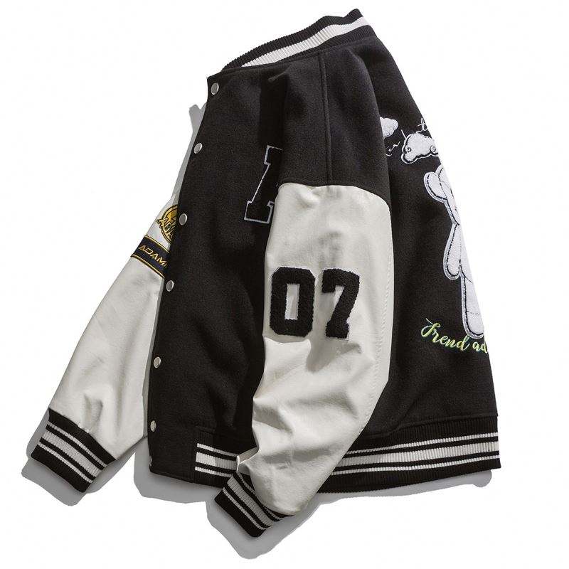 แจ็กเก็ตทีมโรงเรียนหนังขนสัตว์ของผู้ชายเสื้อแจ็คเก็ตสตรีทแพทช์โลโก้เบสบอลและคนขับรถบรรทุกสไตล์เลตเทอร์แมนสำหรับฤดูหนาว
