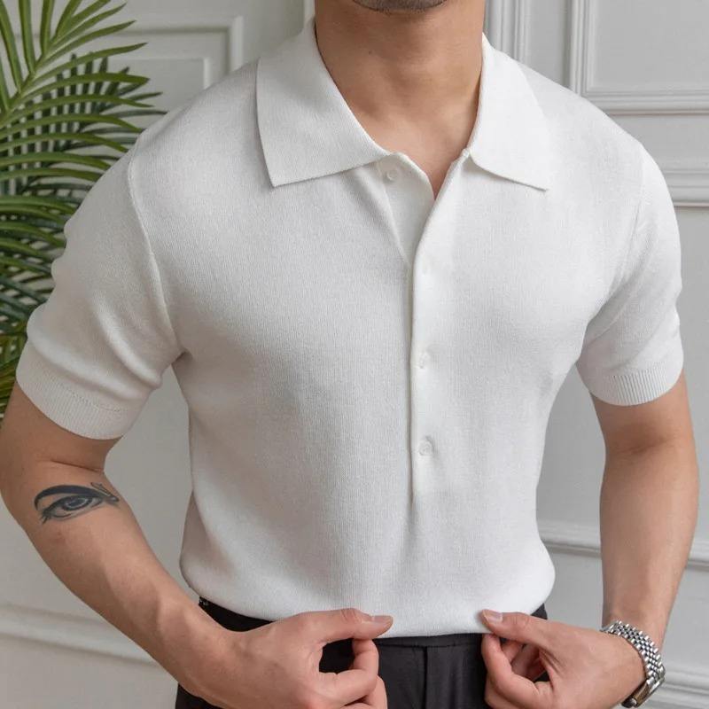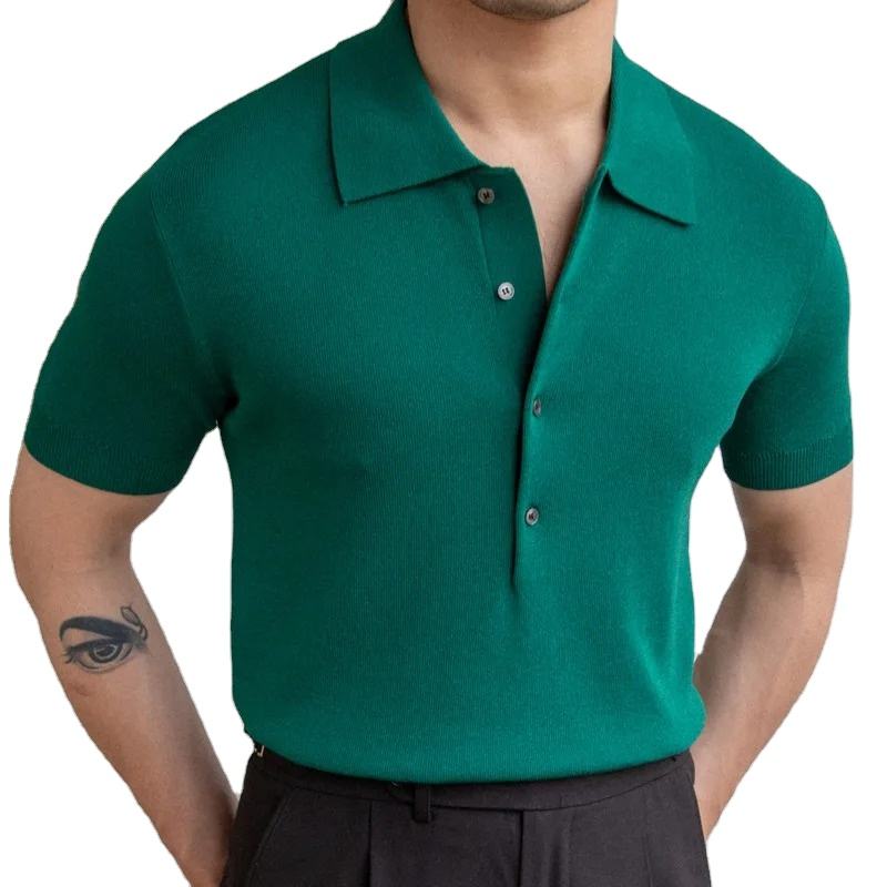 เสื้อโปโลผู้ชายแบบสั่งทำคุณภาพสูงเสื้อกีฬาลำลองผ้าฝ้ายระบายอากาศแขนสั้นโลโก้สไตล์แฟชั่นสตรีท-สีพื้น