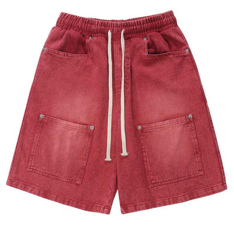 กางเกงยีนส์ขาสั้นทรงหลวมของผู้ชายกางเกงขาสั้นผ้าปะติดออกแบบได้ตามต้องการทำงานฤดูร้อน