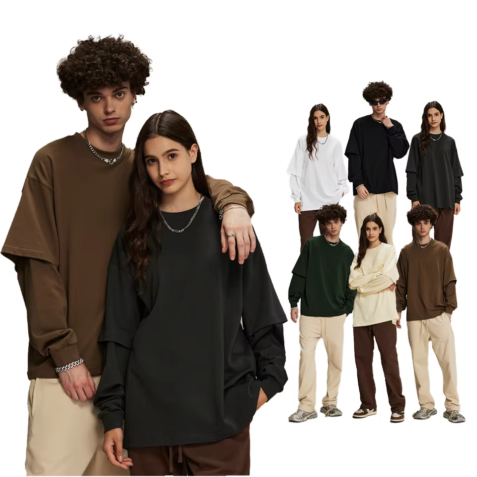 เสื้อยืดสำหรับผู้ชายโอเวอร์ไซส์ผ้าคอตตอนลายกราฟิก300 GSM รุ่นใหญ่พิเศษออกแบบได้ตามที่ต้องการ