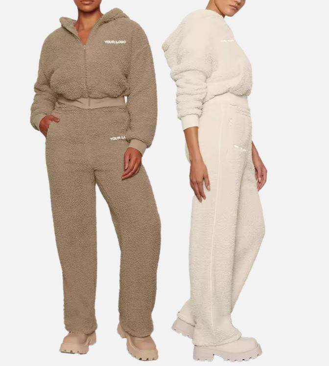 ชุดวอร์มมีฮู้ดขนแกะเชอร์ป้าแบบรูดซิปสำหรับผู้หญิงชุดวอร์มฤดูหนาวกางเกงวอร์มขากว้าง2ชิ้นสำหรับผู้หญิง