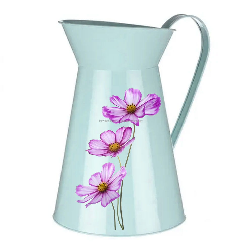 เหยือกโลหะเคลือบลายดอกไม้เหยือกแจกันสำหรับตกแต่งสวน