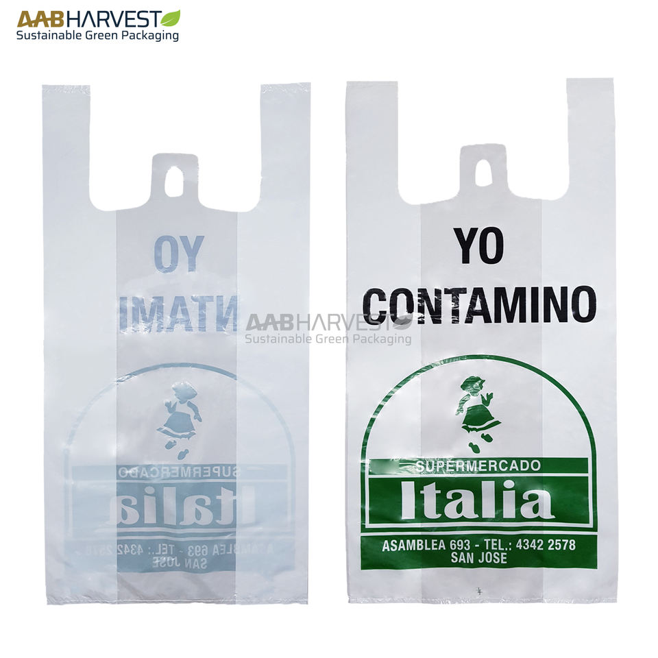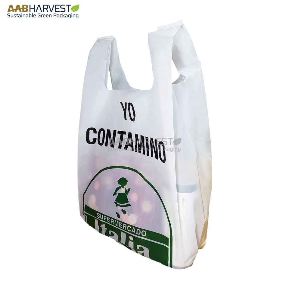 ถุงบรรจุภัณฑ์เสื้อยืดพลาสติกมีหูหิ้วสำหรับใส่อาหารนำกลับมาใช้ใหม่พิมพ์ลายได้ตามต้องการ