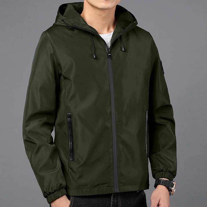 แจ็กเก็ตกันลมลำลองสำหรับผู้ชายพิมพ์ลายแบบกำหนดเองกันน้ำมีปกเสื้อมีฮู้ดกลางแจ้งโลโก้ออกแบบได้ตามต้องการ