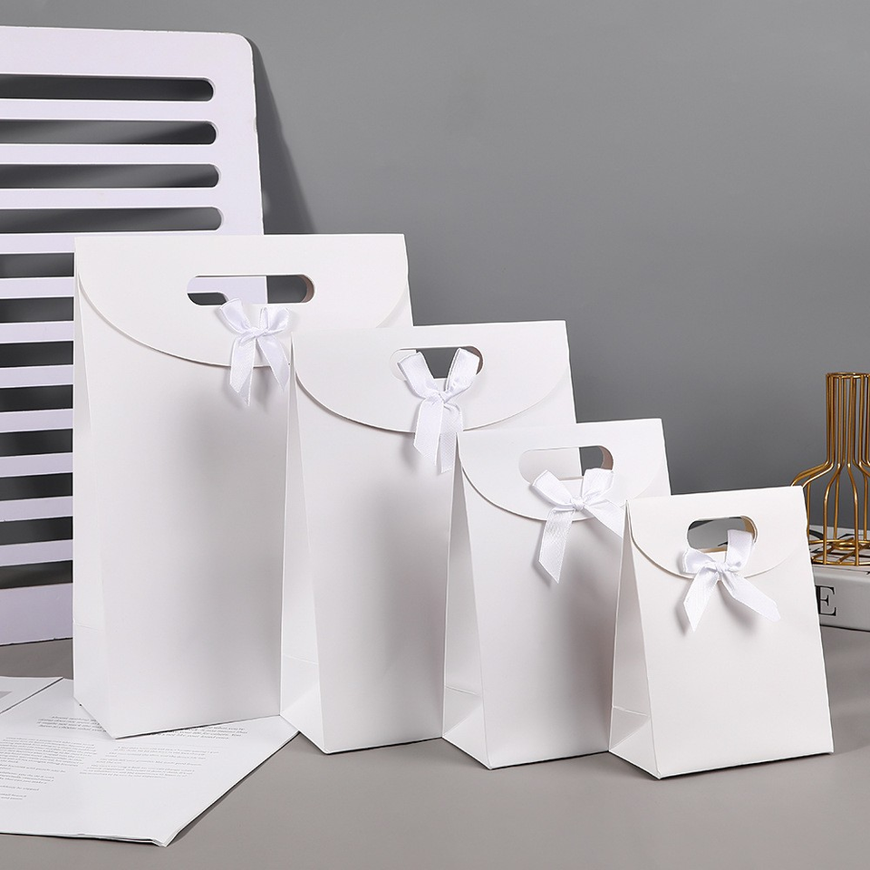 ถุงกระดาษของขวัญช้อปปิ้งพร้อมกระเป๋าถือและโบว์สำหรับเสื้อผ้ารองเท้าบรรจุภัณฑ์เครื่องสำอาง