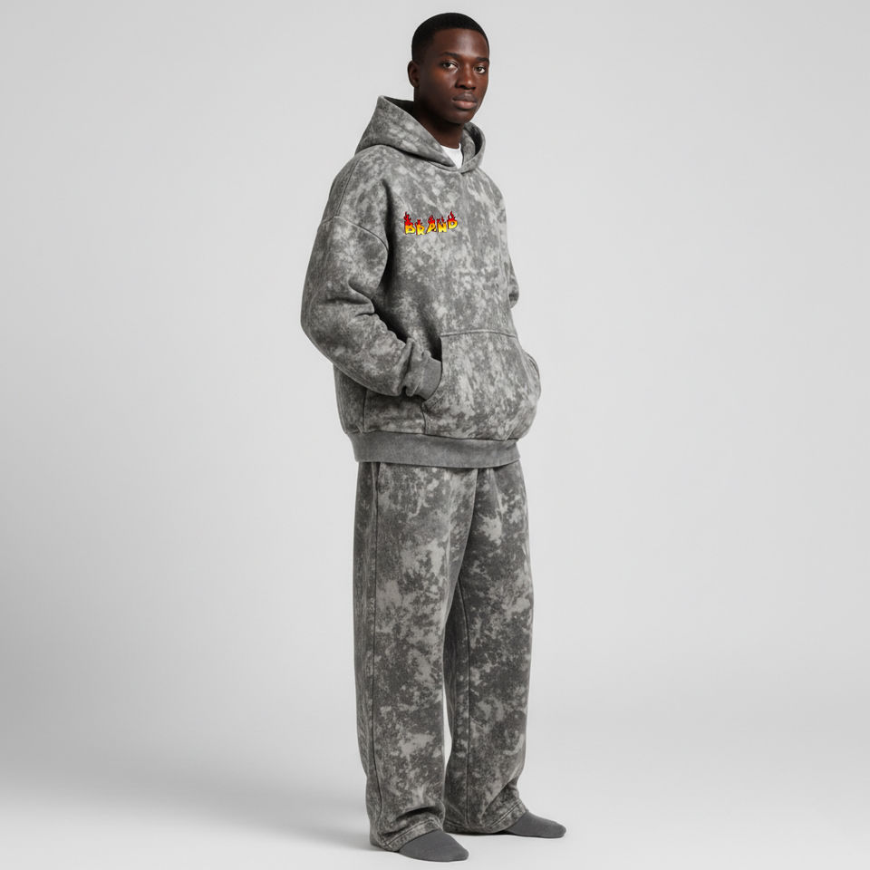เสื้อฮู้ดดี้โอเวอร์ไซส์ผ้าฝ้ายแท้ 100% พิมพ์ลายคุณภาพสูงแบบสั่งทำพิเศษ ชุดเซ็ต 2 ชิ้นสำหรับผู้ชาย ทรงขากว้าง สไตล์วินเทจ สตรีทแวร์ ใส่สบาย