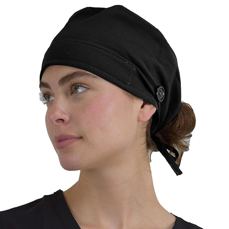 หมวกผ่าตัดสำหรับผู้หญิงหมวกคลุมผมยาวปรับได้พิมพ์ลายออกแบบโลโก้