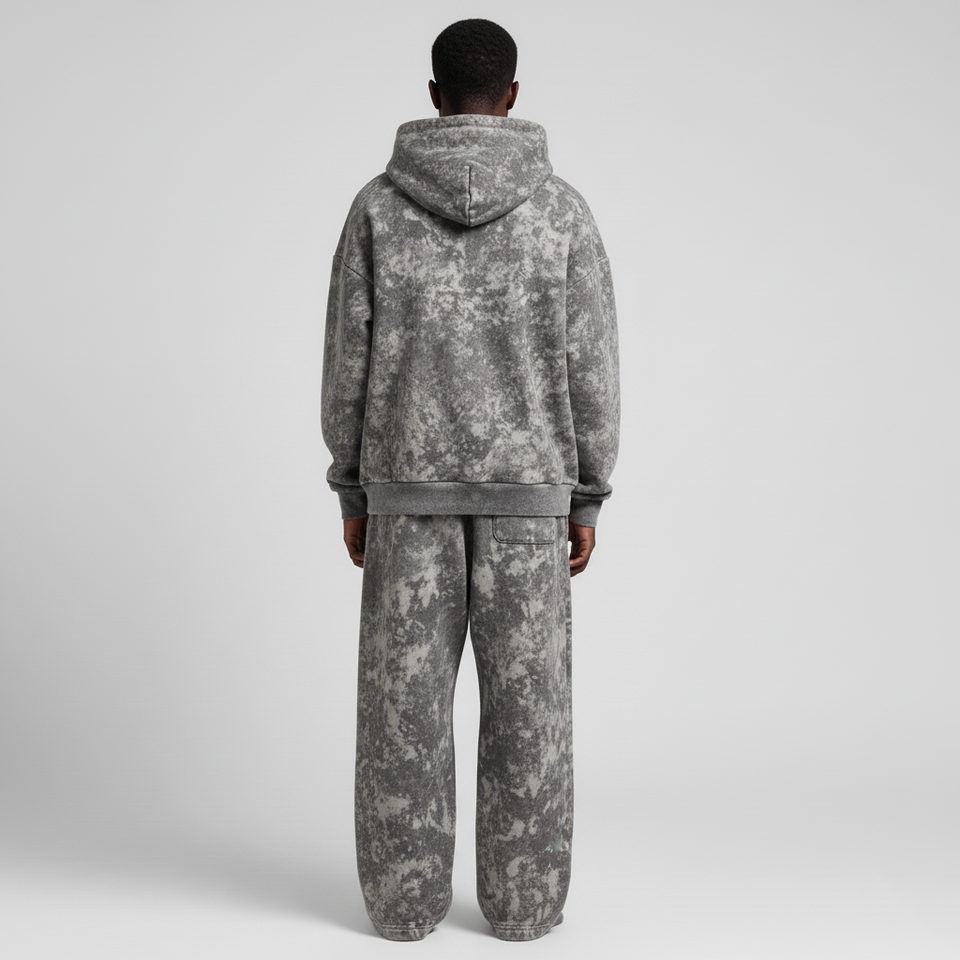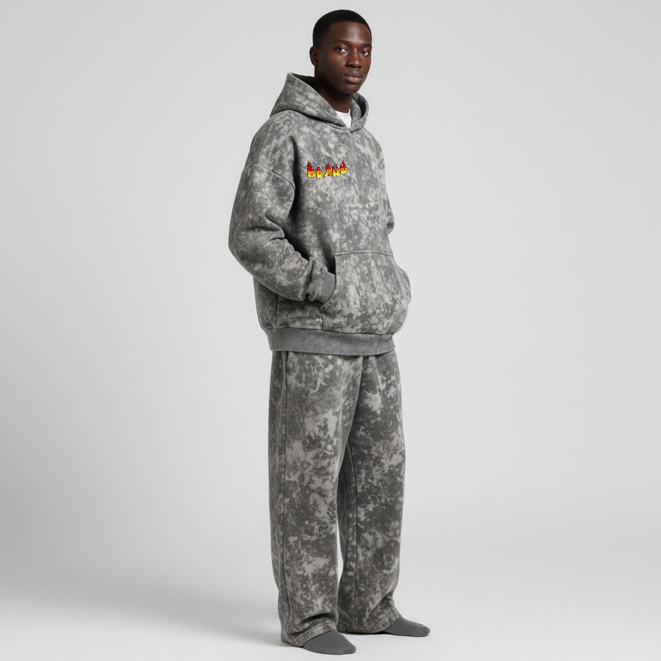 ชุดเซ็ต 2 ชิ้น เสื้อฮู้ดดี้โอเวอร์ไซส์พิมพ์ลายคุณภาพสูง ล้างสีสไตล์วินเทจ พร้อมกางเกงขายาวทรงกว้าง สตรีทแวร์ สวมใส่สบาย