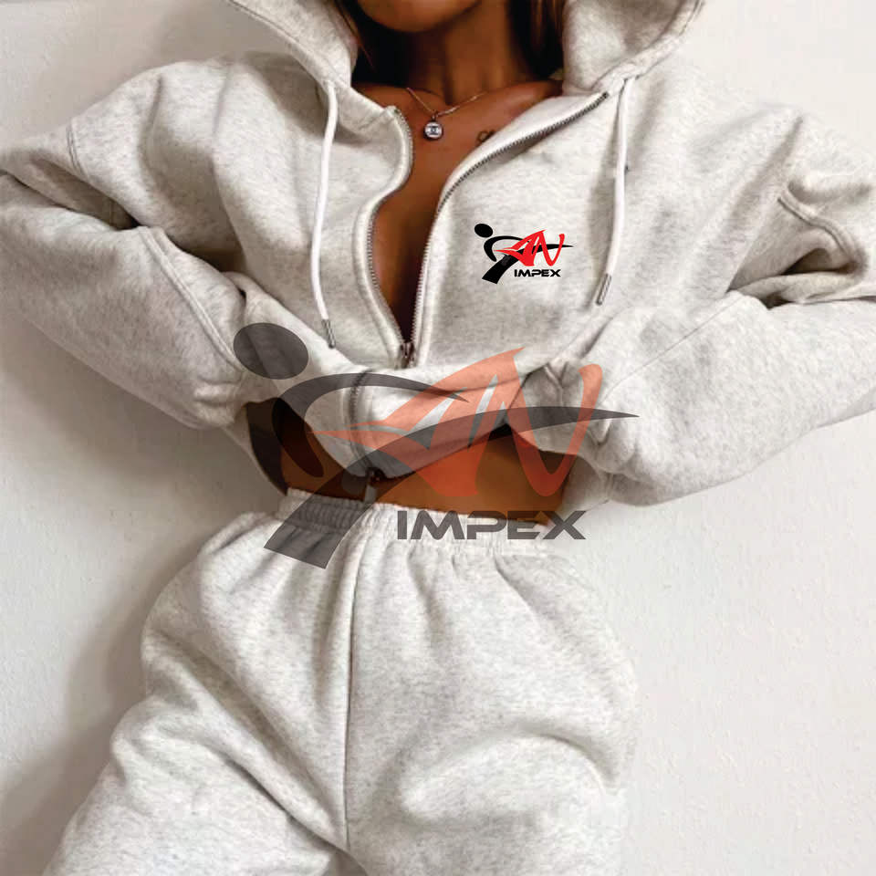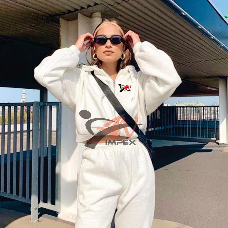 คุณภาพสูงที่กําหนดเองการพิมพ์โลโก้ผู้หญิงซิปวอร์มวัสดุที่กําหนดเองยืดหยุ่นผู้หญิงชุดเหงื่อ