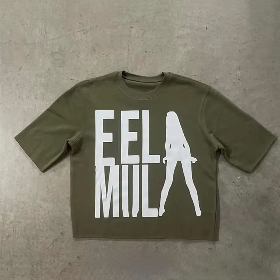 เสื้อยืดครอปพิมพ์ลายสำหรับผู้ชาย