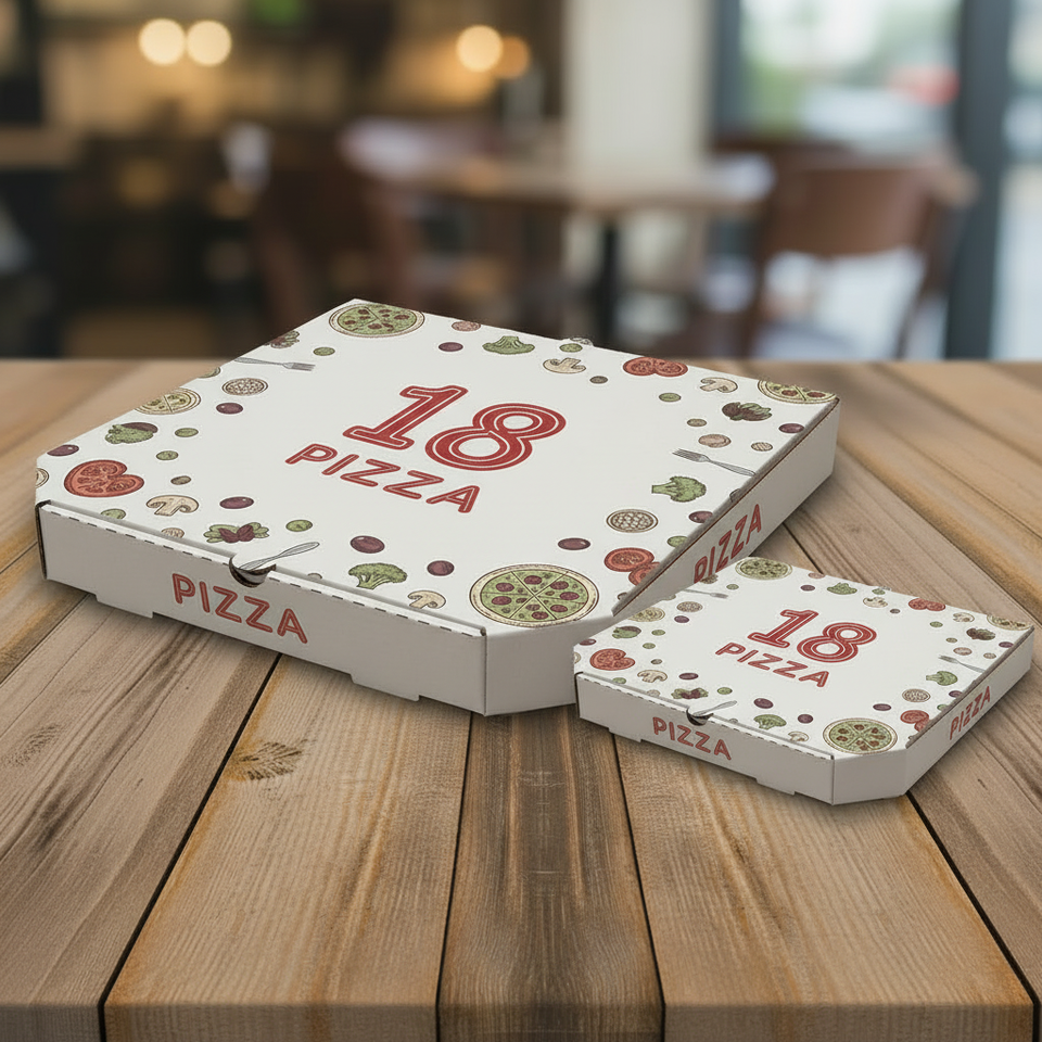กล่องพิซซ่าพิมพ์ลายตามสั่งคุณภาพสูง สำหรับบรรจุภัณฑ์พิซซ่า พร้อมโลโก้และกระดาษลูกฟูกเกรดอาหาร