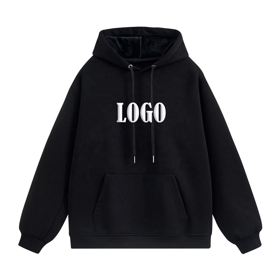 เสื้อสวมหัวสีดำแบบกำหนดเองมีฮู้ดธรรมดาพร้อมกระเป๋า100% ผ้าฝ้าย
