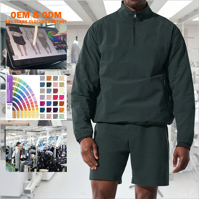 ชุดเสื้อมีฮู้ดผ้าไนลอนแบบสวมศีรษะและกางเกงขาสั้นสำหรับผู้ชายมีซิปแบบกำหนดเอง