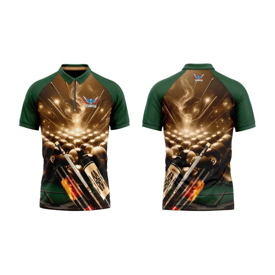 เสื้อเจอร์ซีย์เล่นพูลแห้งเร็วแบบสั่งทำชุดเล่นสนุ๊กเกอร์และบิลเลียดพร้อมกระเป๋าหน้าอกพิมพ์ลายเลือกขนาดได้
