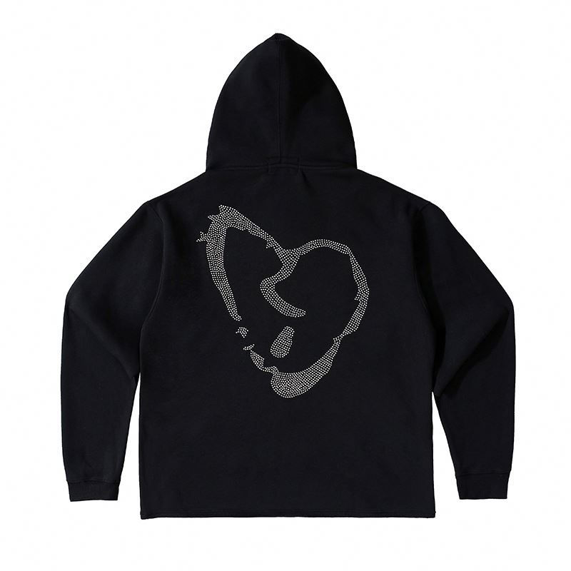 เสื้อฮู้ดลายพลอยเทียมมีฮู้ดสำหรับฤดูหนาวลายกราฟิกเปล่าแบบใหม่ขายดีและโลโก้เจาะตามสั่ง
