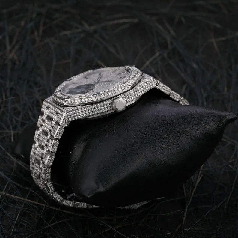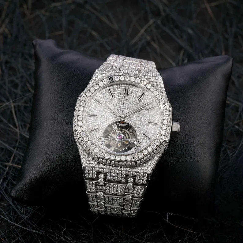 นาฬิกาข้อมือผู้ชายคุณภาพสูงสั่งทำพิเศษ ดีไซน์หรูหรา สไตล์ฮิปฮอปล่าสุด ระบบกลไกอนาล็อก ประดับเพชรโมอิสซาไนต์ระยิบระยับ