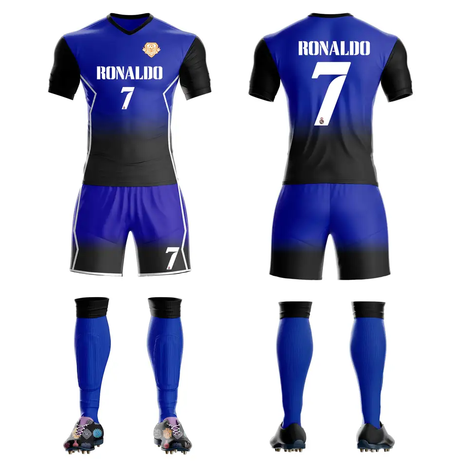 ชุดเสื้อฟุตบอลแบบกำหนดเองชุดเครื่องแบบแห้งเร็วระเหิดแบบเต็มพร้อมโลโก้สำหรับเด็กชุดทีม