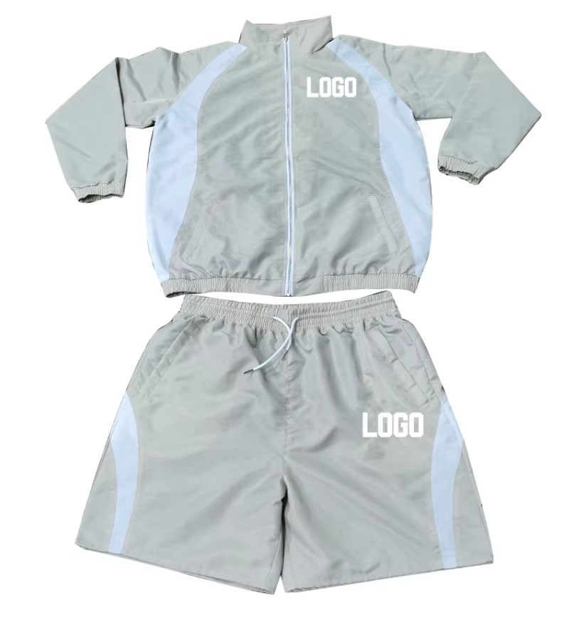 ชุดเสื้อแจ็คเก็ตและกางเกงวอร์มกันลมสะท้อนแสงคุณภาพสูงสำหรับเล่นกีฬากลางแจ้ง ผลิตตามสั่ง ทำจากไนลอนกันน้ำ สำหรับผู้ชาย