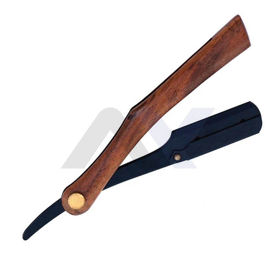 ชุดมีดโกนพับได้ขอบตรงทำจากสแตนเลสชุดมีดโกนเก่าพร้อมด้ามจับไม้ของขวัญสำหรับช่างตัดผม