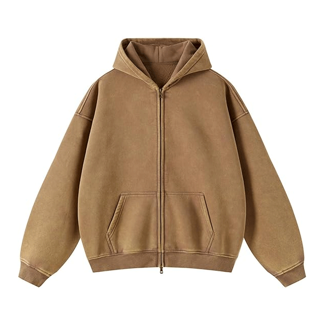 เสื้อฮู้ดซิปผ้าฟลีซคอตตอน 100% คุณภาพสูง สไตล์สตรีทแวร์ ล้างสีแบบแอซิดวอช ทรงโอเวอร์ไซส์สำหรับผู้ชาย เหมาะสำหรับฤดูใบไม้ร่วง เป็นมิตรต่อสิ่งแวดล้อม ปักลายพระอาทิตย์