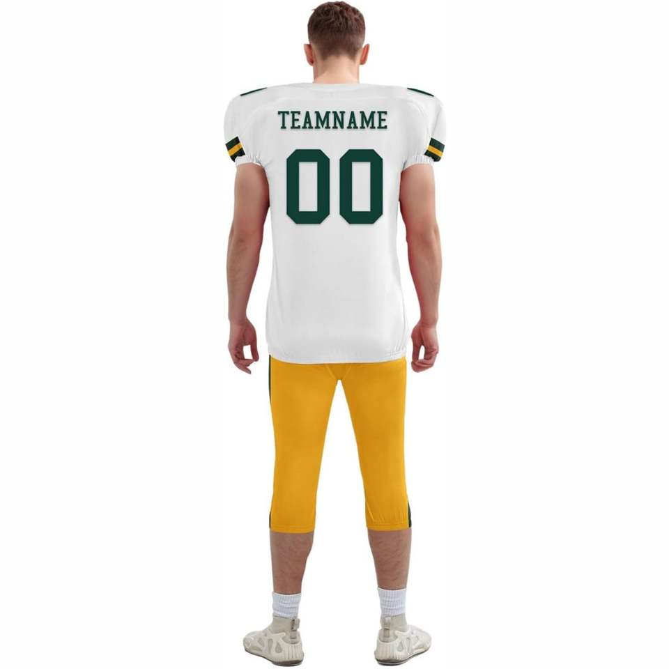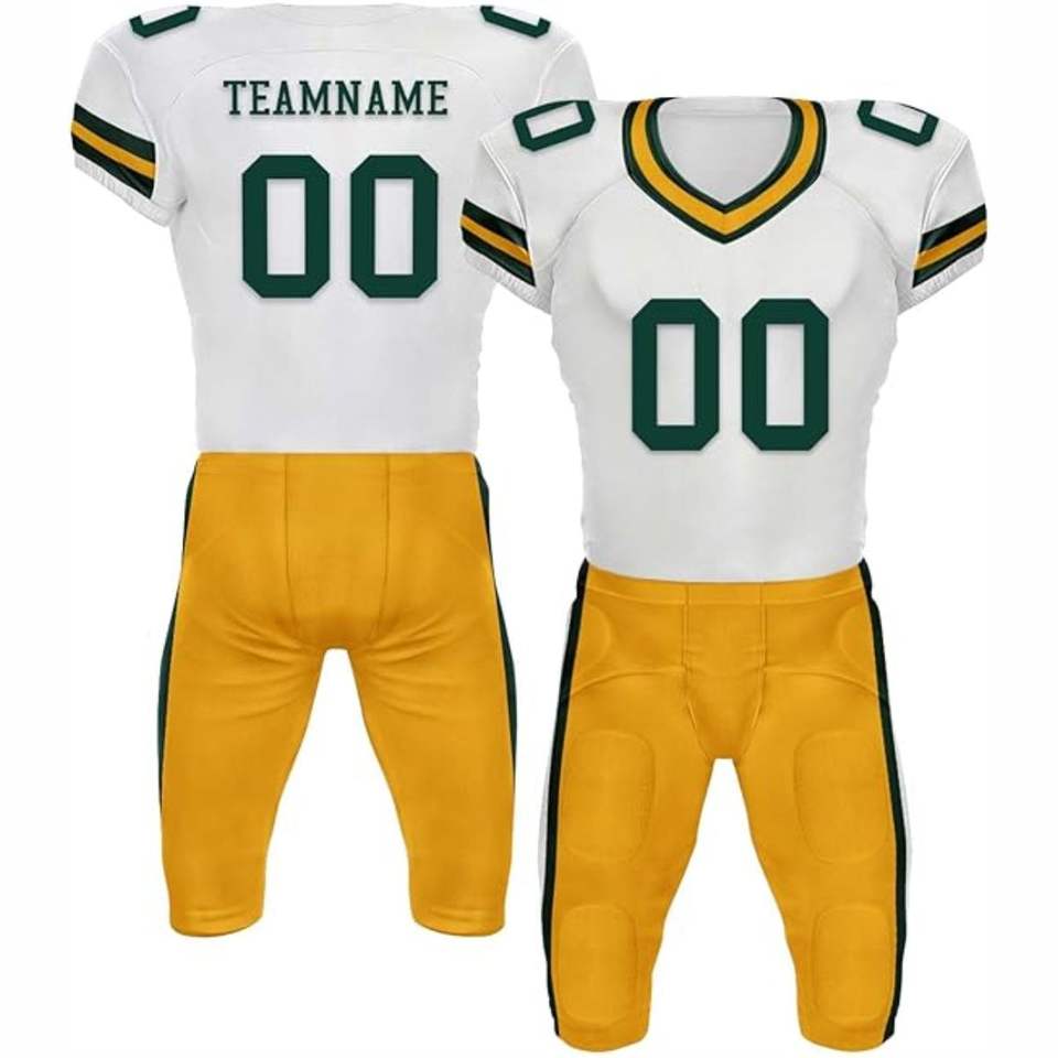 ชุดยูนิฟอร์มอเมริกันฟุตบอลแบบสั่งทำคุณภาพสูง ระบายอากาศได้ดี ชุดเสื้อเจอร์ซีย์แขนสั้นและกางเกงผ้าโพลีเอสเตอร์