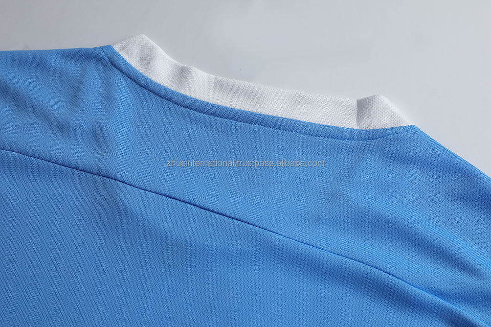 ชุดเสื้อฟุตบอล2ชิ้นสำหรับผู้ใหญ่และหญิง100% โพลีเอสเตอร์เสื้อฟุตบอลสีฟ้าขาวกำหนดได้เอง