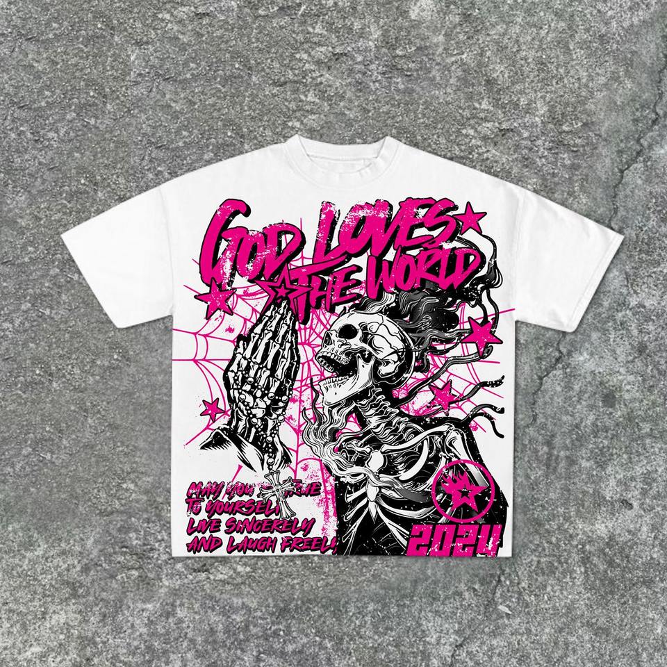 เสื้อยืดสำหรับผู้ชายเสื้อยืดผ้าฝ้าย100% น้ำหนักมากทรงหลวมพิมพ์ลาย