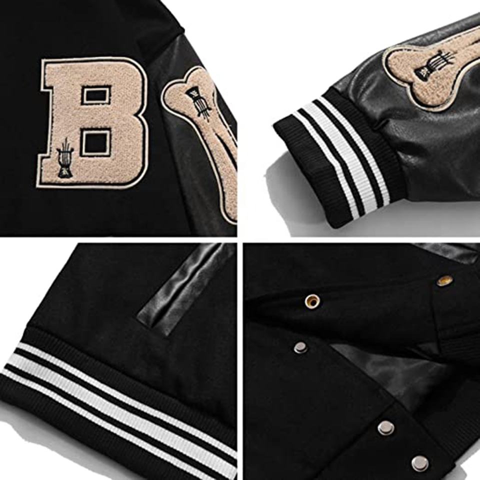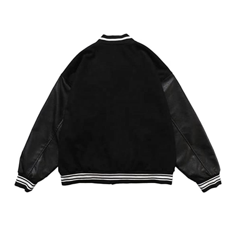 เสื้อแจ็กเก็ตขนสัตว์สำหรับผู้ชายวินเทจปกคอตั้งแขนหนังแบบเลตเทอร์แมนสำหรับฤดูหนาว
