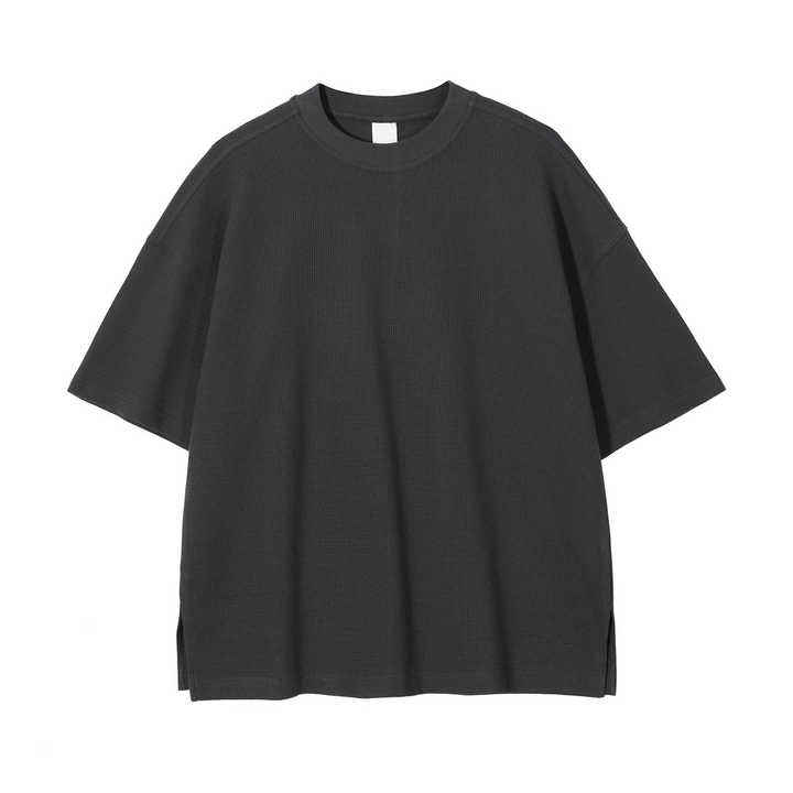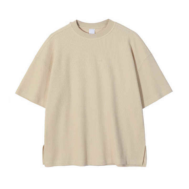 เสื้อยืดถักวาฟเฟิลน้ำหนัก260ก. แบบกำหนดเองได้เสื้อโอเวอร์ไซส์ระบายอากาศได้เทคนิคการพิมพ์ลายแบบแข็ง