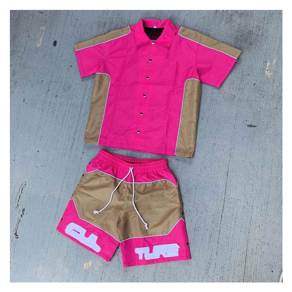 High Quality Custom Windbreaker Set Men's Side Button Hoodie and Short Set Zipper Nylon Windbreaker Jacket Hoodies and Shorts