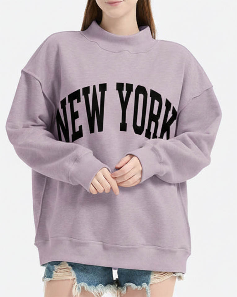 เสื้อสเวตเตอร์คอเต่าแขนยาวทรงหลวมแบบดรอปโชว์เดอร์สองสี ผ้าฝ้ายฟลีซ 100% คุณภาพสูงสำหรับผู้หญิง ตกแต่งด้วยป้ายและเลื่อม
