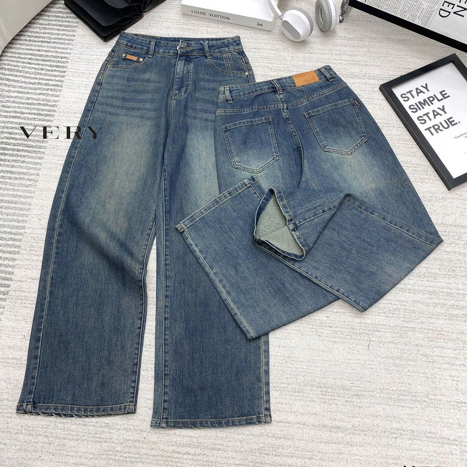 กางเกงยีนส์ขาบานสำหรับผู้หญิงกางเกงยีนส์ซักทรงหลวมแบบย้อนยุคขากว้างระบายอากาศได้ดีสำหรับฤดูร้อนหรือฤดูหนาวขายส่ง