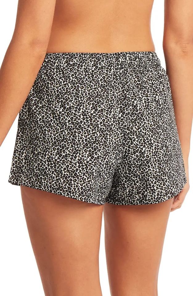 ชุดว่ายน้ำเล่นฟิตเนสของผู้หญิงเสื้อโพลีเอสเตอร์พิมพ์ลายกางเกงขาสั้นสำหรับว่ายน้ำ
