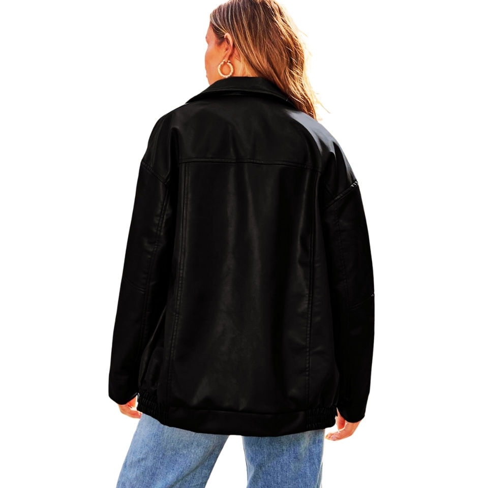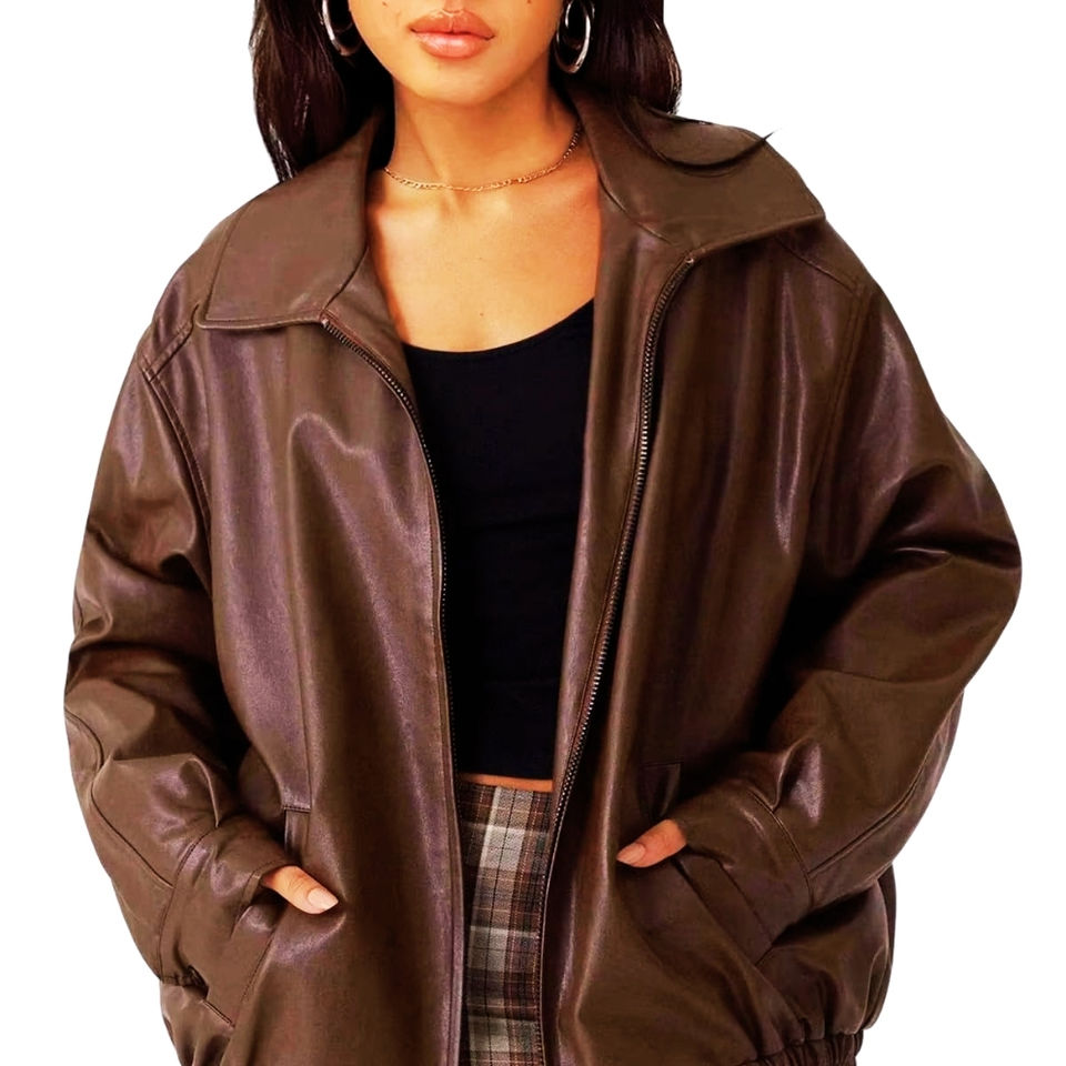 แจ็กเก็ตขี่มอเตอร์ไซค์หนัง PU ของผู้หญิงเสื้อแจ็กเก็ตใส่สบายทันสมัย